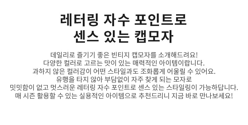 | 컬러 | 그린(green), 네이비(navy), 베이지(beige), 블랙(black), 카키(khaki), 화이트(white) |