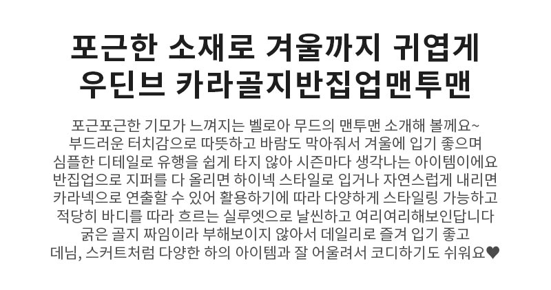 | 안감 | 있음 | 없음 | 기모가공 | |
