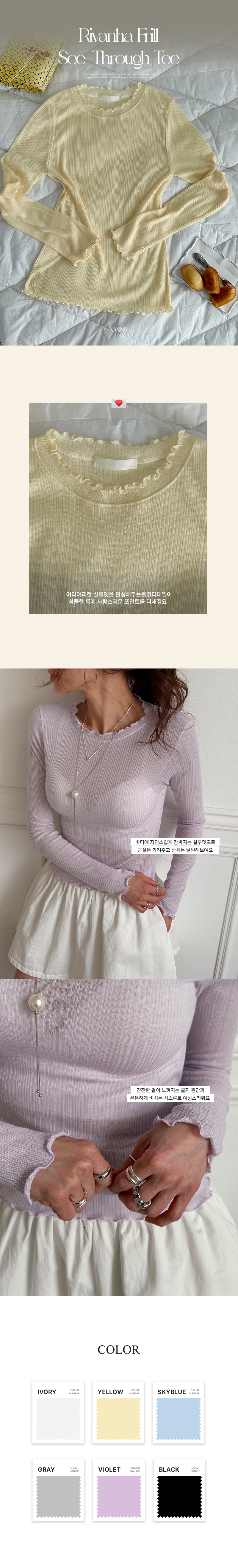| 컬러 | 그레이(gray), 블랙(black), 스카이블루(skyblue), 아이보리(ivory), 옐로우(yellow), 바이올렛(violet) |